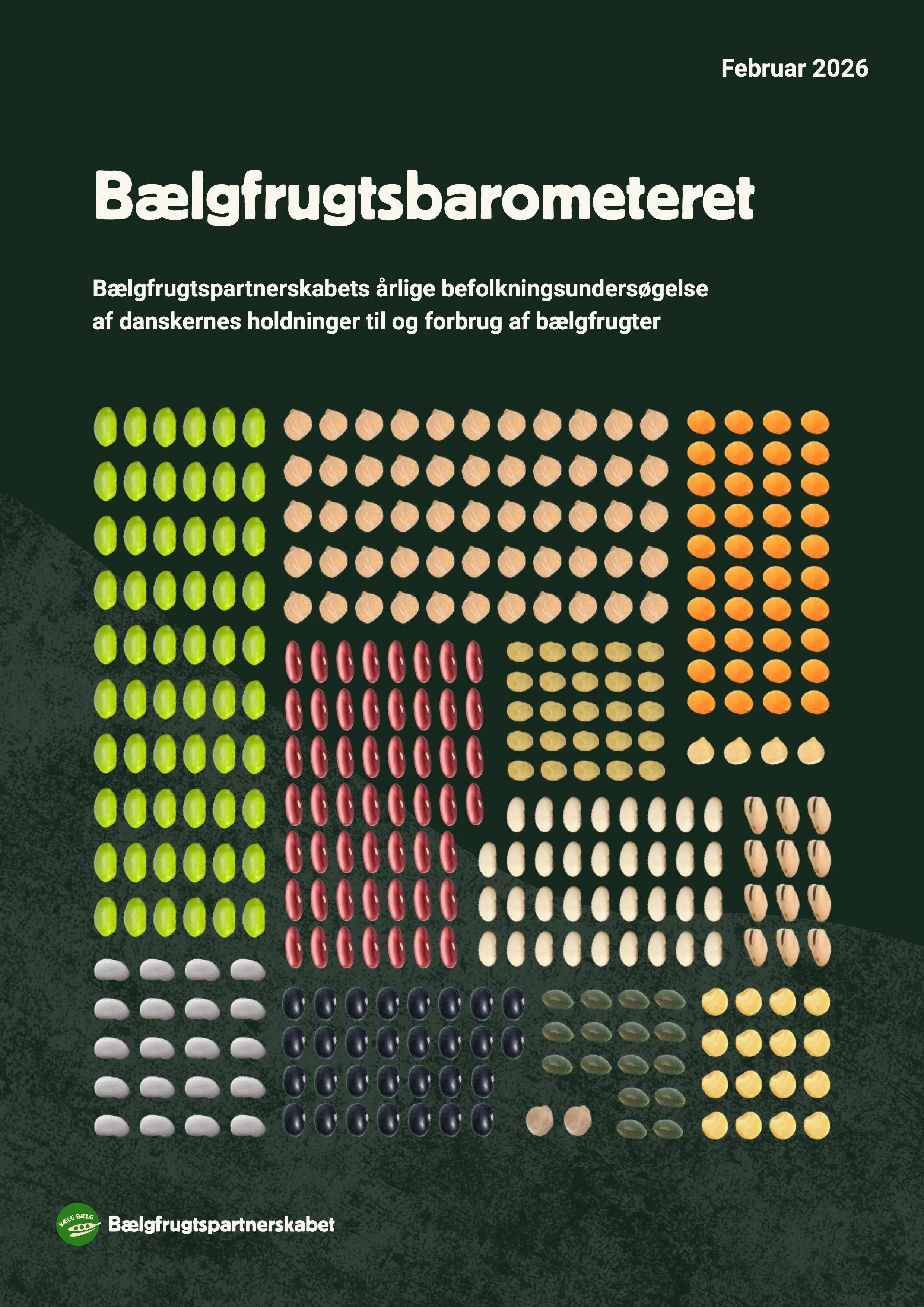 Bælgfrugtspartnerskabets vision er at forbedre både folkesundheden og klimaet ved at øge danskernes indtag af bælgfrugter og styrke produktionen herhjemme. For at opnå det, har vi ét konkret mål:100 gram bælgfrugter om dagen til alle.Men det kræver et stort samarbejde og indsatser hele vejen gennem værdikæden - fra marker til kantiner, fra detail til forbrugere.